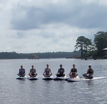 Are you Ready for a new exciting and fun challenge? Join us for Paddle Board Yoga right here in Inlet Beach and 30A ! This class takes place on Lake Powell or the Gulf, when conditions permit. We paddle out a short distance, anchor each board and have a fun class with yoga flow practice. Afterwards, you will have free time to paddle around or have fun practicing balance poses. This class is open to beginners and experienced yogis alike. It includes everything you need, paddle board, leash, paddle, life vest, anchor system. Classes are from 8:00-10:00am, Lake Powell Public Launch, $75 per person, $40 if you have your own board.