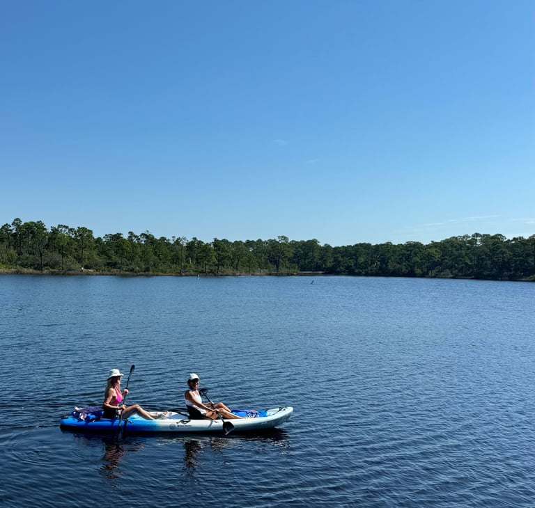 Discover the beauty of our Dune Lakes and Inlets while paddling on a paddle board or a kayak. Enjoy your own private guided tour with your friends and family right in the heart of 30A, home of the largest dune lake in North America. This tour will help you discover one of our beautiful lake, navigate thru the Inlet and into the Gulf of Mexico if conditions permits. We usually take a break at the beach, enjoy some refreshments and refuel with complimentary water, fruits & snacks. While near the inlet at the beach, you can witness this rare phenomenon of the exchange between the lake and the Gulf of Mexico called Outfall. This phenomenon only exists in Florida and Oregon, only 4 countries in the world, the US, Madagascar, New Zealand and Australia. This tour typically last 2-3 hours , we recommend wearing sunscreen, a hat, long sleeve sunshirt and bring water.